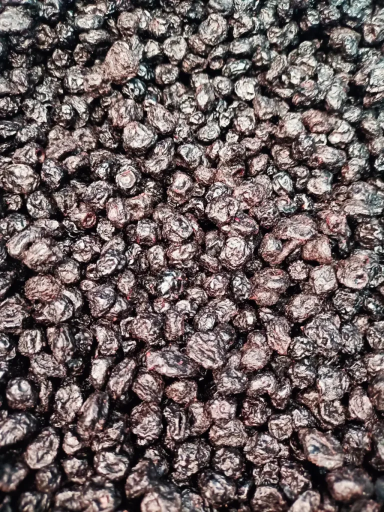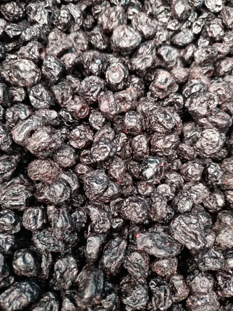Son frutos seleccionados que han pasado por un proceso de deshidratación para reducir su contenido de agua, preservando así su sabor dulce y ligeramente ácido, así como sus propiedades nutricionales. Su textura es suave y masticable, y su color característico es un rojo oscuro intenso. Son una fuente natural de antioxidantes, fibra y vitaminas, lo que los convierte en un snack saludable y energético. Además, son muy versátiles y se utilizan comúnmente en mezclas de frutos secos, repostería, ensaladas, cereales y productos de panadería.