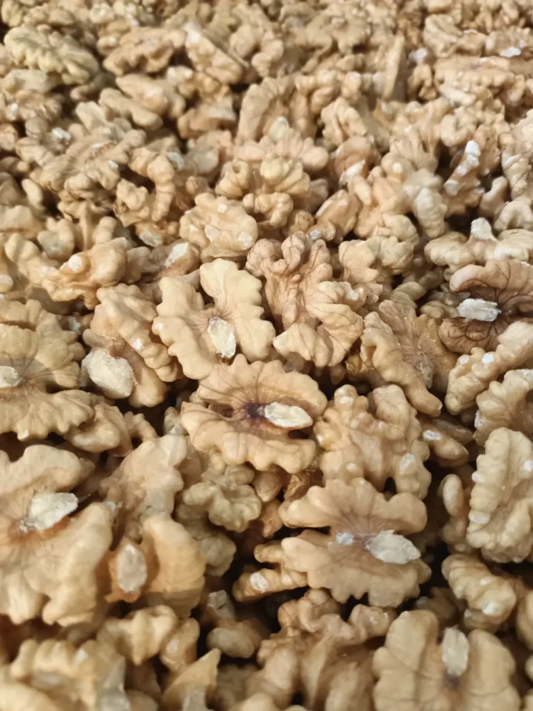 Variedad Chandler. Es una variedad de nuez de alta calidad, apreciada por su color claro, sabor suave y forma entera en mitades que recuerda a una mariposa. Se distingue por su frescura, textura crujiente y valor nutricional, lo que la hace ideal tanto para el consumo directo como para su uso en repostería, cocina gourmet y productos alimenticios premium.